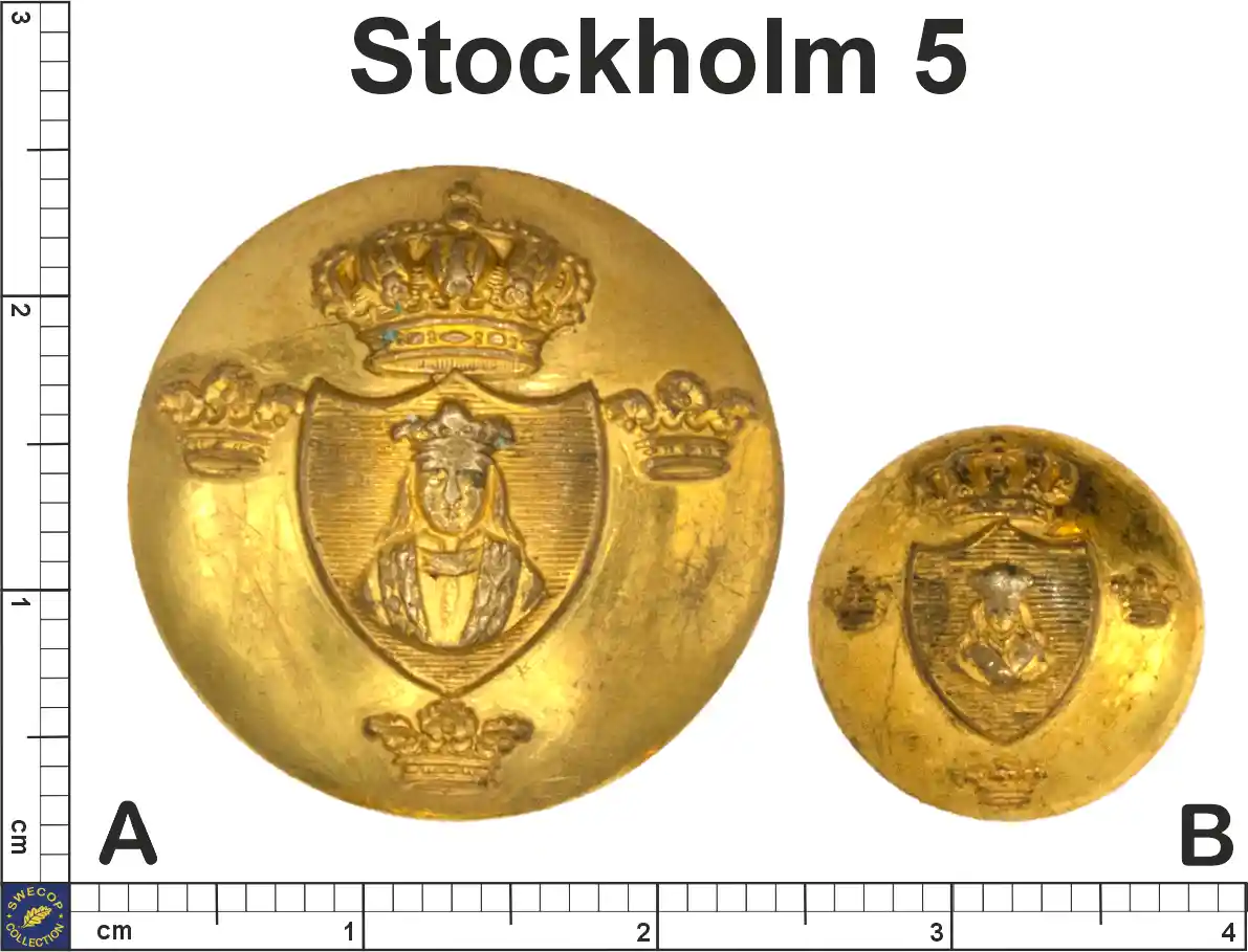 Innan 1954 fanns det stads- och kommunknappar med olika motiv. 1954 blev det en gemensam nationell stil med tre kronor på knapparna.